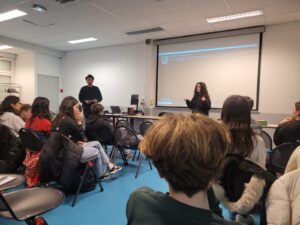 Hier, lundi 30 mars, les élèves de l’enseignement cinéma-audiovisuel ont participé à la projection de 4 films à l’occasion de La Fête du court-métrage qui se tient en France du 25 au 31 mars. Ces cinéphiles avertis ont été surpris par la chute du court « Omnibus », ils ont pu apprécier le comique ainsi que la composition de François Civil dans « Pour le rôle » de Pierre Niney, le sacrifice d’une jeune sportive pour sauver une concurrente d’un mariage forcé les a touchés dans « Beach Flags », enfin « Le Bleu Blanc Rouge de mes cheveux » a provoqué de vives discussions. Qu’il s’agisse de réfléchir sur les rivalités dans le monde du 7e Art comme sur les difficultés du quotidien et de l’intégration face au patriarcat, nos collégiens se sont montrés d’une grande pertinence. La séance était animée par Maëva et William venus du centre culturel Eole que nous tenons à remercier.